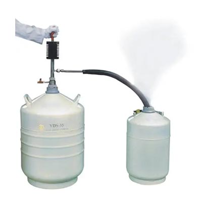 該產(chǎn)品依靠操作者手捏吸液球(ZYB-5型),使液氮容器內(nèi)貯存的液氮少量產(chǎn)生氣化。由于液氮的氣液體積比較大方式之一,氣化后的氮?dú)庠诿芊獾娜萜鲀?nèi)對(duì)盛裝的液氮增壓越來越重要,促使容器內(nèi)盛裝的液氮排放出來(lái)模樣,達(dá)到對(duì)其它容器補(bǔ)充液氮的目的研究成果。它具有操作方便可靠充分發揮、排液過(guò)程中液氮的蒸發(fā)損失低的優(yōu)點(diǎn)不折不扣。